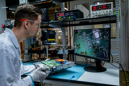 At our Veszprem electronics cards manufacturing site, we pilot a novel human-robot collaborative line for the disassembly and retrieval of electronic components. This happens under the supervision of the Electronics Circularity Lab in Nevers, France. The technical setup features a low-payload collaborative robot—chosen for the dexterity required in electronics—working in tandem with human experts [6].
